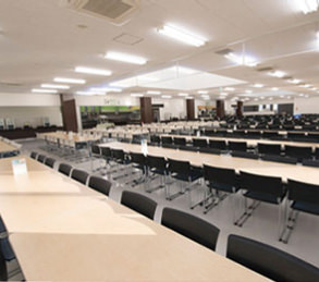 天井にトップライトを設けた明るい食堂です。メニューも豊富で充実のランチタイムを過ごせます。