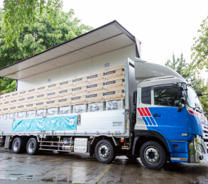 新機種の初出荷を祝うセレモニーです。栃木事業所の従業員はもちろん、社外の来賓もお招きし、トラックに積載されたMade in 栃木の製品が出荷されるのを元気いっぱいに見送ります。
