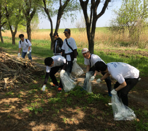 地域貢献活動として従業員が有志で集まり、渡良瀬遊水地のクリーン作戦に参加しています。ラムサール条約に登録されている渡良瀬遊水地の自然環境を保つため、遊水地およびその周辺のゴミ清掃を行う活動です。