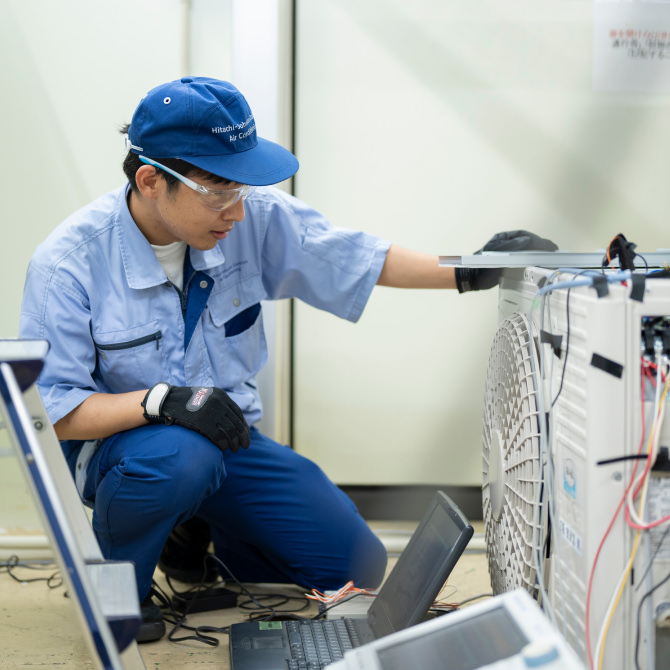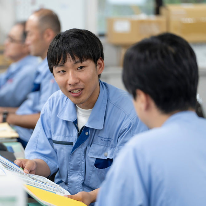 国内で販売されている空調製品の品質保証に関する業務——具体的には、市場における施工現場へのコンサルティング、市場への施工状況の調査などを行っています。業務として特に多いのは、誤った使用方法や施工が原因の不良に対して、製品や施工現場を調査しその結果を報告書にまとめること。学生時代のレポート作成とは違い、誰が見ても分かるような内容にしないといけないため、その点にかなり難しさを感じています。また、その結果を研究開発側、設計開発側、製造側へフィードバックすることを通じて、製品の信頼を支える大切なポジションだという点に、責任感とやりがいを感じています。