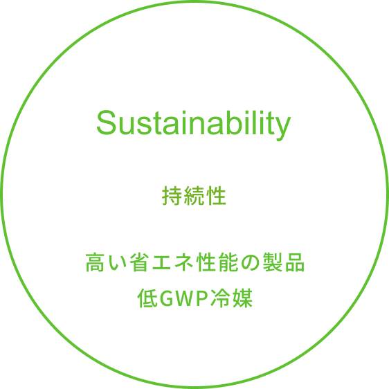 高い品質・効率性・信頼性を兼ね備えた空調製品に、「凍結洗浄」をはじめとする画期的な技術で新しい価値を提供することで、一人ひとりが快適に過ごせる最適な空間の創造に貢献します。