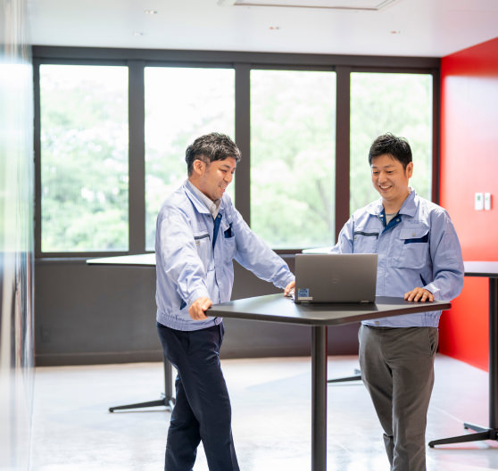 主任技師(課長相当)に昇格。量産を前提とした開発のみならず、中長期のロードマップを見据えた新たな要素技術の検討も並行して行うポジションになりました。同時に、メンバーに対するマネジメントもさらに責任あるものに。一人ひとりのやりがいまで意識したうえで、強みを引き出し、大きな成長につながっていく仕事の任せ方を意識しています。