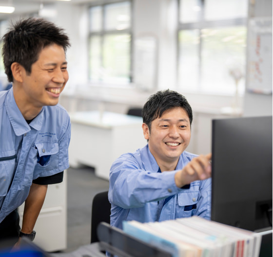 まずは3か月の配属前研修。いまとは少しプログラムが異なりますが、技術や生産プロセスについての知識など、基本中の基本をしっかり身につけました。同期と親しくなるうえでも、いい機会でしたね。配属後初めての業務は、空調機器の量産業務のサポート。先輩たちがかまってくれたおかげで(笑)、仕事の基礎を順調に学ぶことができました。新入社員は、わからないことがあっても自分からは話しかけづらいもの。指導員である先輩が、何かと向こうから声をかけてくれたことがとてもありがたかったです。他部署の先輩も含め、全員で新入社員を育てていく風土を実感しました。